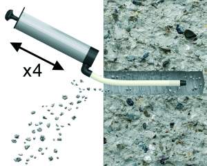 Curățați de 4 ori gaura cu pompa de mână.