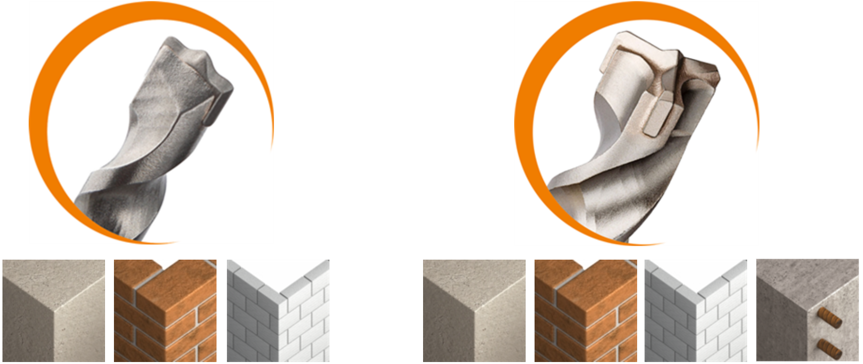 Fiecare tip de substrat are o specificație diferită și de aceea este important să folosiți întotdeauna un burghiu care să se potrivească în mod optim cu substratul. Acest lucru va asigura cel mai bun efect de ancorare, cel mai bun confort de găurire pentru instalator, precum și cel mai scurt timp de lucru posibil.