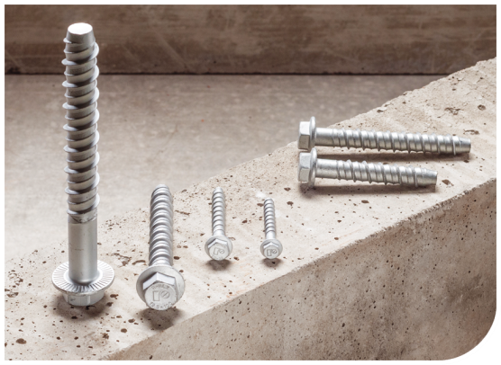 - Ancore șurub pentru fixări temporare sau permanente, aprobate pentru aplicații în beton fisurat și nefisurat și aplicații care necesită rezistență la foc sau rezistență seismică.