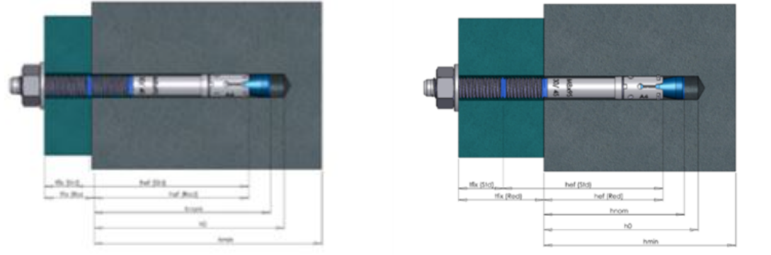 Acest parametru influențează capacitatea de încărcare a ancorei. Cele mai populare ancore mecanice, precum ancora expandabilă și ancora șurub pentru beton, au de obicei 2 adâncimi de ancorare - redusă și standard.