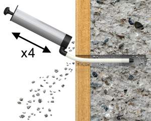 Curățați de 4 ori gaura cu pompa de mână.