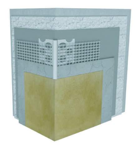 - Profilele cu plasă se montează pe fiecare colț vertical în fațada termică (ex. colțul clădirii).