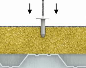 Utilizat împreună cu șaiba de oțel / talerul R-GOK pentru instalarea straturilor de izolație pe acoperișuri plate cu substraturi din tablă sau lemn